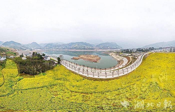 春和景明,万物复苏,巴东县溪丘湾乡平阳坝神农湖边,黄灿灿的油菜花缀满湖岸,与静谧的湖水、杂沓的民居组成一幅“花在岸上开,影在水中游”的春日盛景,蛊惑不少搭客前来踏青赏景、打卡眷恋。