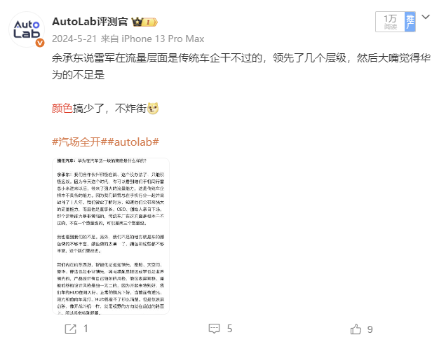 余承东唯独承认不如小米的即是那时的智界S7颜色不够多。