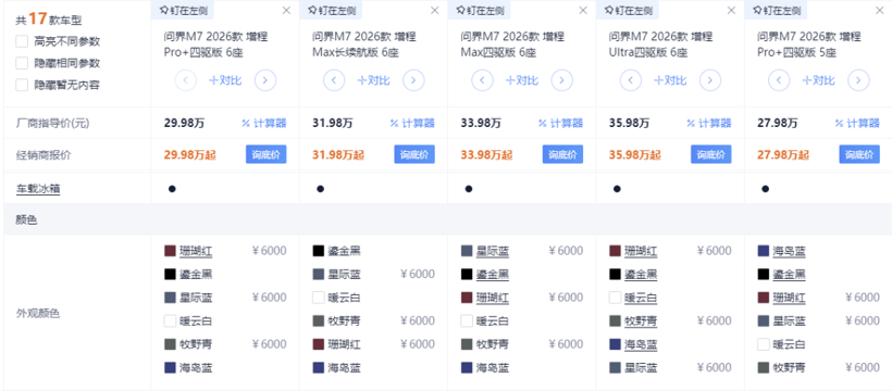 可是不错参考问界M7,概况率这些顺眼的配色皆是要加几千块的。