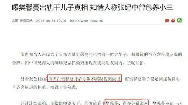 在樊馨蔓微博开骂杜星霖之前,就有记者爆料她出轨干男儿。