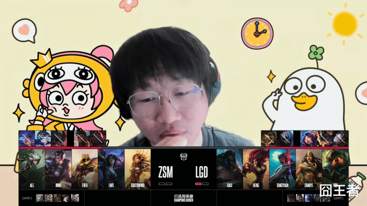 第一局比赛,ZSM蓝色方,禁用:芸阿娜、妮蔻、剑魔、布隆、列娜塔,采取:Ale亚恒、Ning奇亚娜、、FoFo岩雀、LWX女枪、Southwind洛;LGD红色方,禁用:发条、兰博、沙皇、泰坦、日女,采取:Sasi石头东说念主、Heng杰斯、Tangyuan瑞兹、Shaoye维鲁斯、YCX毒头
