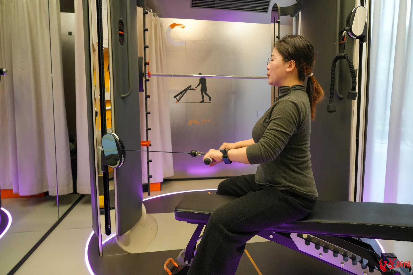 这款健身舱如故成齐造。据成齐拟合将来科技有限公司党支部布告李孟先容,公司深耕智能健身已有7年,推出过“魔镜”等爆款产物,在AI视觉识别、智才调量器械、线上私教平台等方面本事老到,才有了此次全球开创,在成齐首发的新式健身场景。这种健身舱,是一种把AI智能建造、真东谈主良友私教以及稀少健身空间聚积在通盘的新模式。