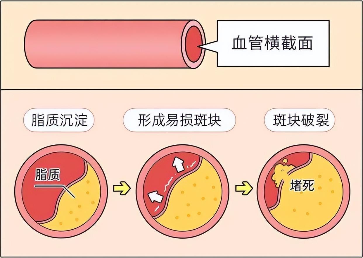 当血液中的低密度脂卵白胆固醇(LDL-C)水平过高时,这些脂肪颗粒会穿过受损的血管内皮细胞,千里积在血管壁里面。免疫细胞(巨噬细胞)会试图拔除这些脂肪,但在磨灭多数脂质后会调整成泡状细胞并最终亏本,在血管壁内酿成一个“脂质池”。这便是软斑块的雏形。