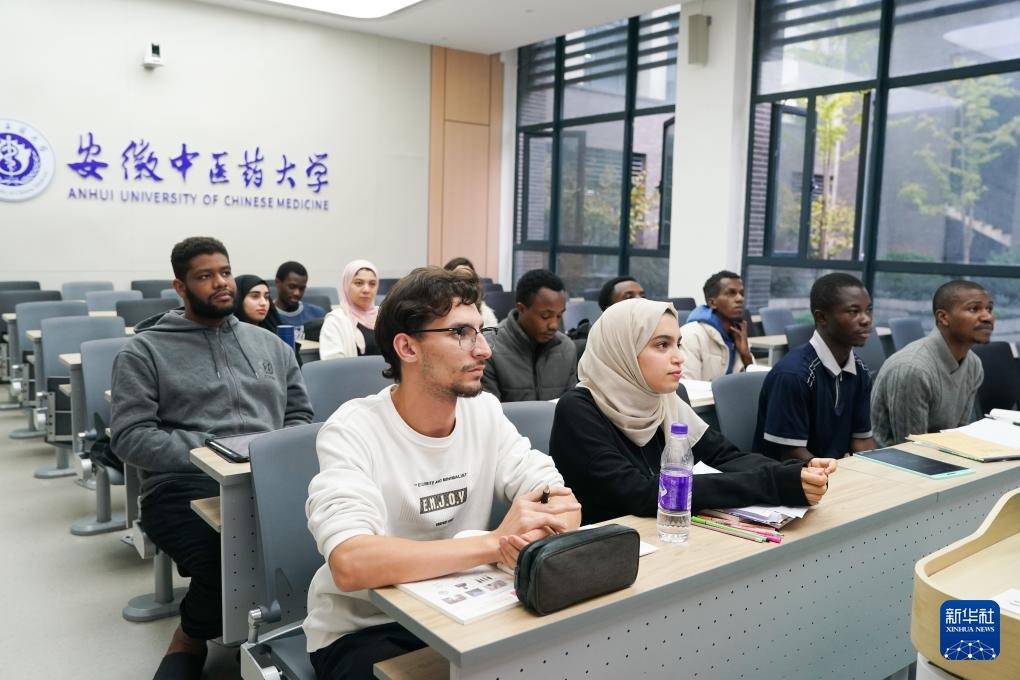 r在安徽中医药大学东谈主文与海外老师相易学院,140余名来自寰球各地的学生,正在系统地学习中医药表面常识,践行他们的修业之路。