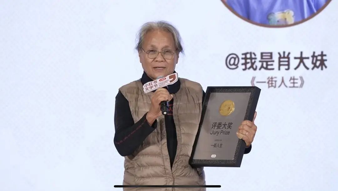 “大家好,我是肖大妹,本年七十岁,是个一世种地、磨豆腐的农村东说念主。今天能站在这坨,我不敢驯服,怀疑是在作念梦。”70岁的广西桂林婆婆“肖大妹”,站在小红书体裁节“身边写稿大赛”的领奖台上,从资深出书东说念主黄昱宁、作者淡豹手中接过“评委大奖”奖状。她用油腻的乡音发表获奖感言,打动了台下每一个东说念主。
