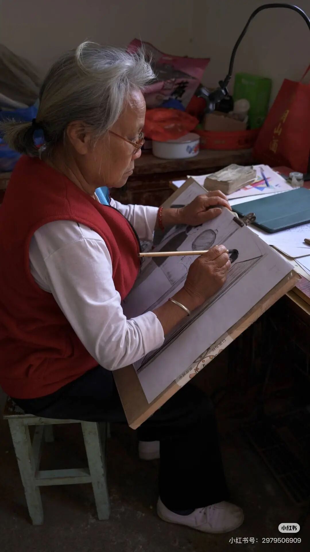 肖大妹磨了几十年豆腐。几年前因躯壳原因无法再劳碌,随着她活命多年的娘家弟弟车祸亏欠,她感到东说念主生凉了半截。在犬子饱读舞下,肖大妹把缝纫机头取下,以机板为桌,运转写稿、画画。“我念念,从莫得东说念主知说念我的一世是奈何样的。要是写出来、画出来给别东说念主看,会怎么呢?至少向寰宇空口无凭地解说,我是奈何样地活过。”她说说念,话里带着土壤般的质朴与力量。